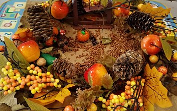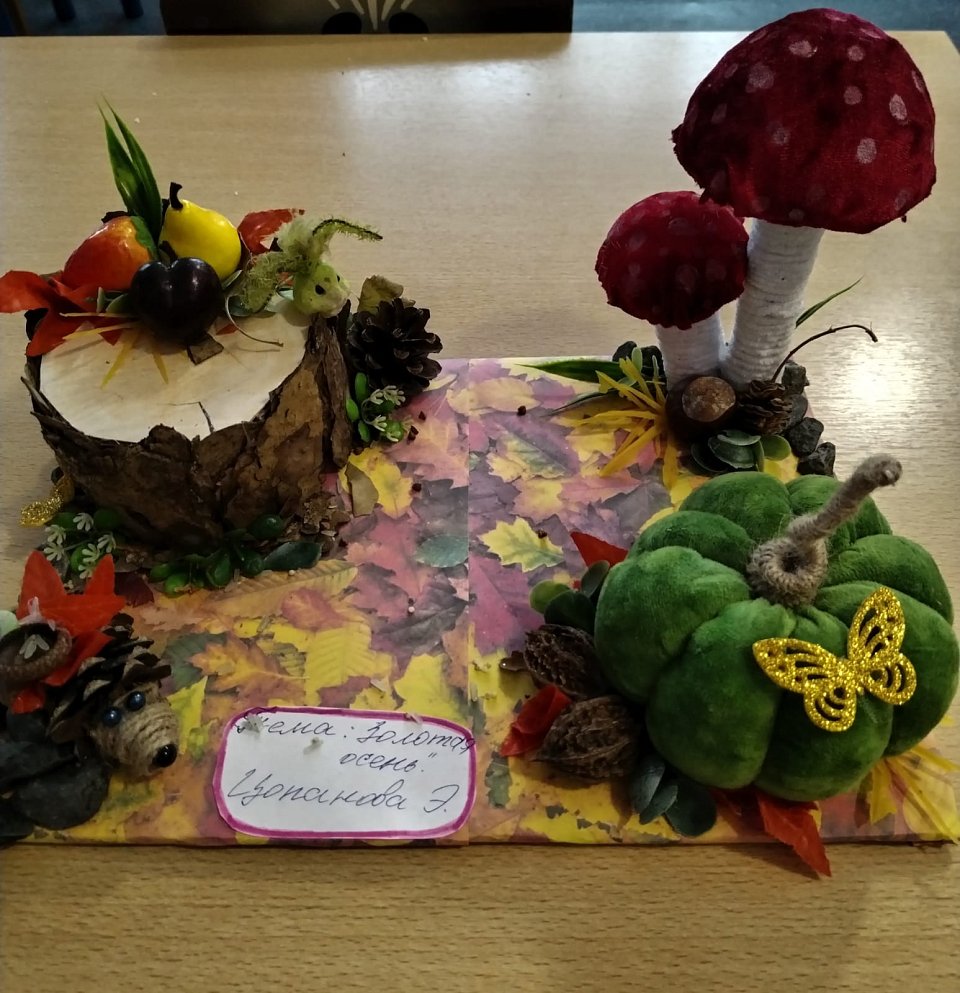 Пенёк, бархат, муляжи, шишки, картон, клей.