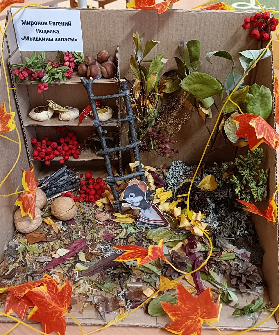 Рябина, грецкие орехи, палки от дерева , мох, трава