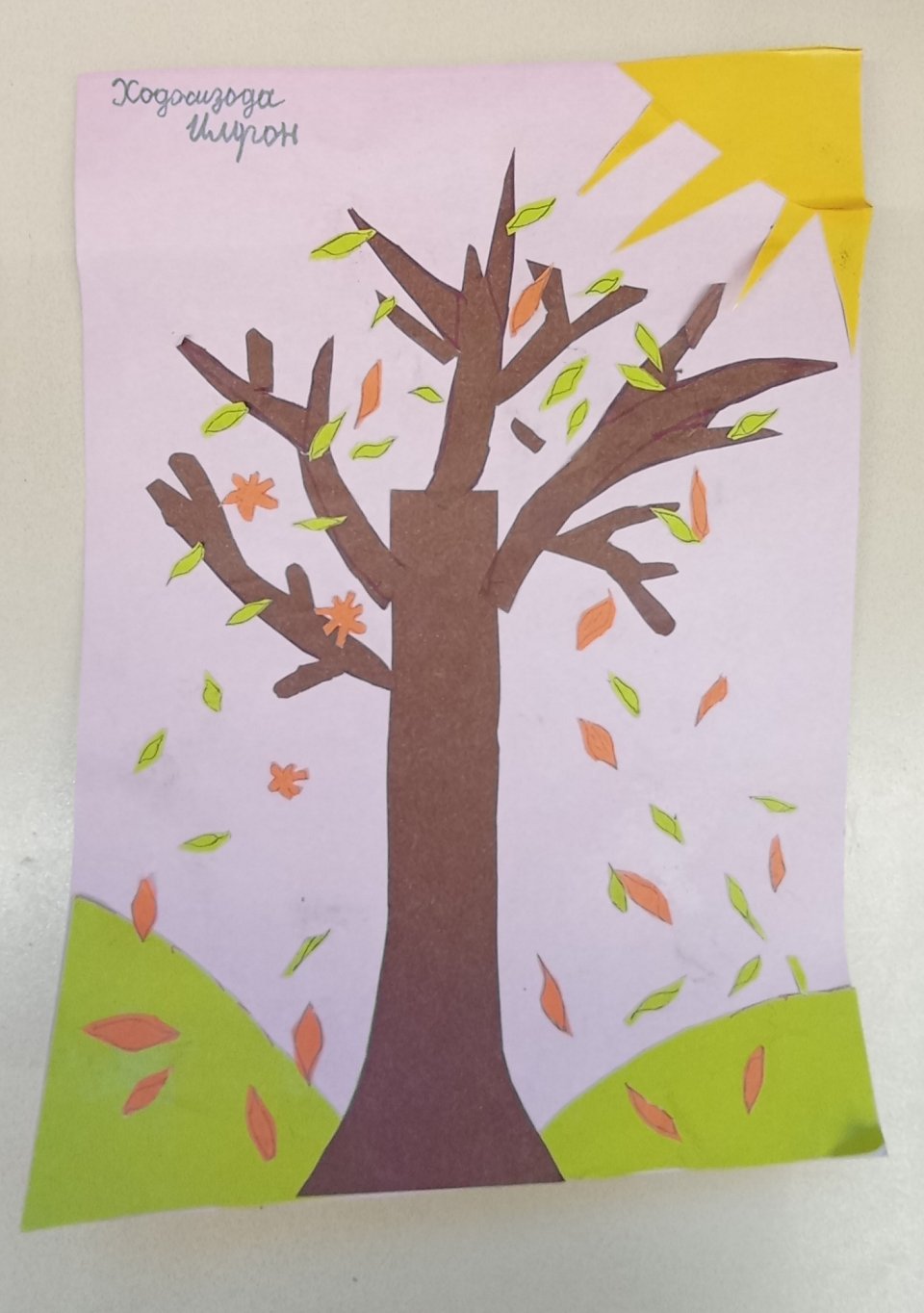 Ребёнок трёх лет. Аппликация из цветной бумаги.