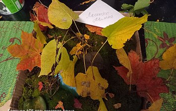 Материалы: мох, сухие листья, веточки, семена растений, картон, клей