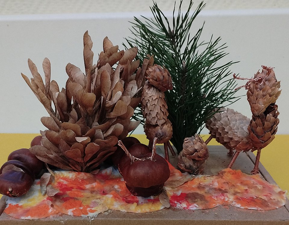 Совместная работа родителей и ребёнка. Возраст воспитанника 2 г. Работа выполнена из природного материала