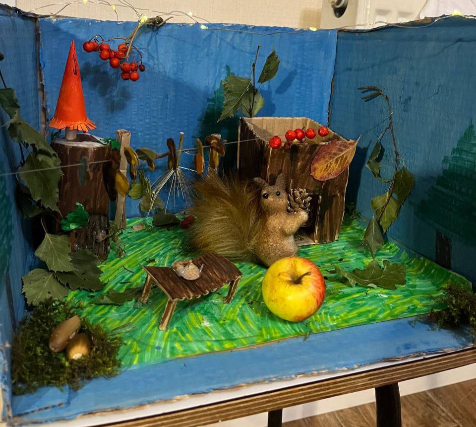 10 лет, природные материалы, картон, цветная бумага, клей, игрушка