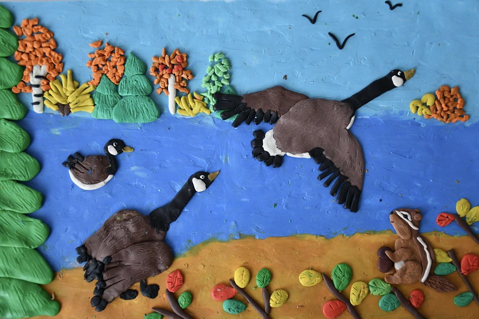 Картина исполнена ученицей 7 лет. Техника исполнения пластилинография. В работе используется картон и пластилин.