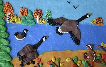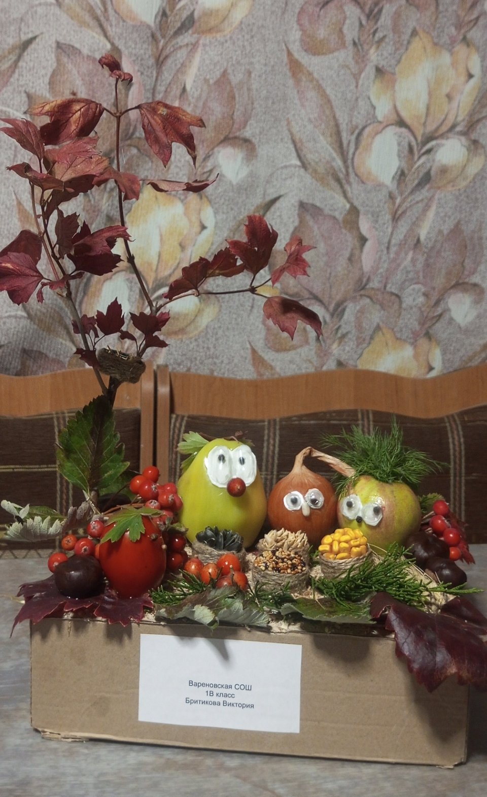 6 лет, использовали крупы, овощи и природные материалы: каштаны, дистья, веточки, калина. Склеивания клеем.