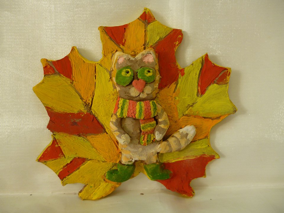 Декоративная плитка слеплена из глины, обожжена и расписана гуашевыми красками.