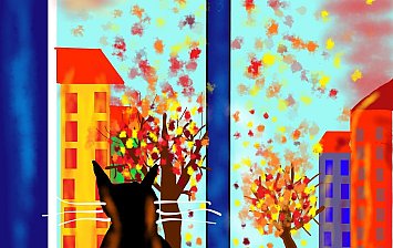 Автору 12 лет. Работа выполнена на стекле акриловым контуром и витражными красками.