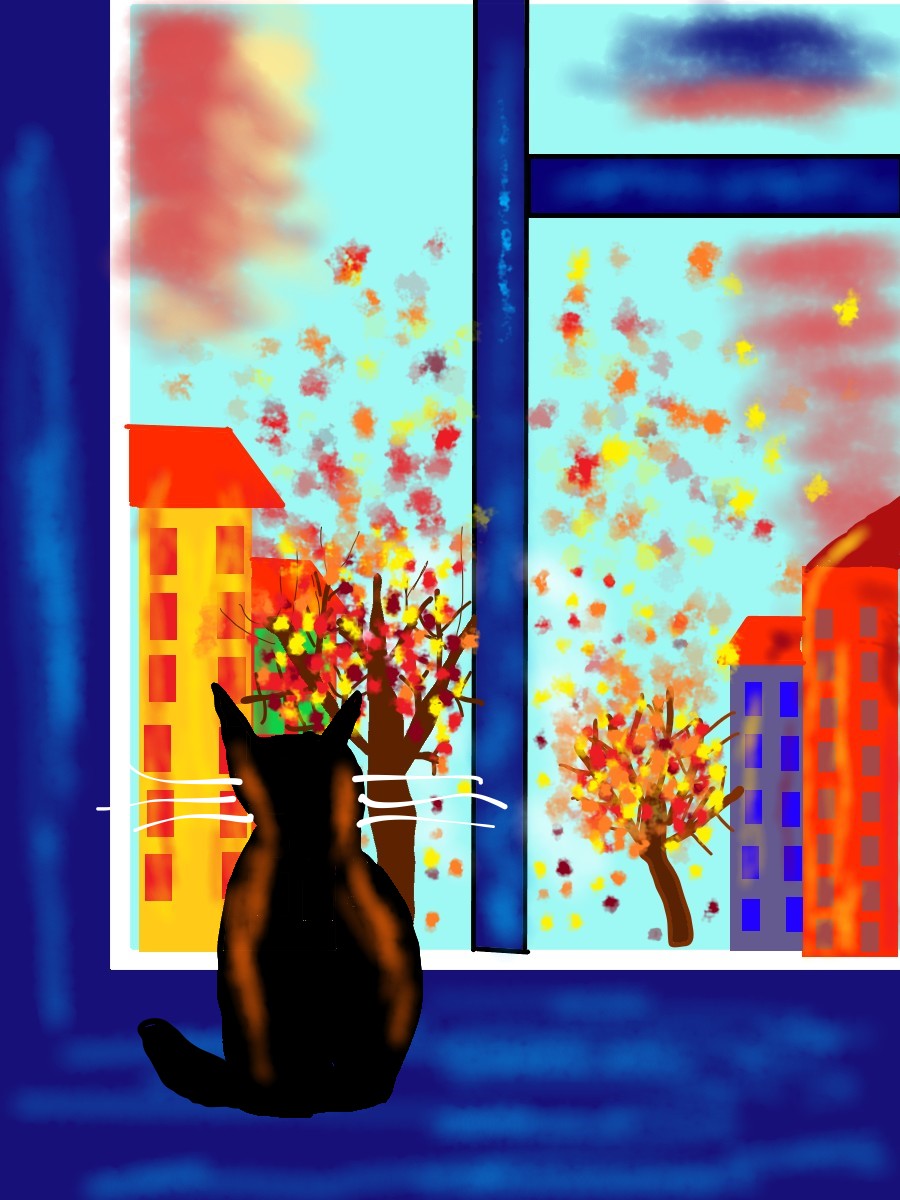 Работа выполнена в графическом редакторе Paint 3D ,с применением различных кистей: акварель, маркер, пастель, заливка.