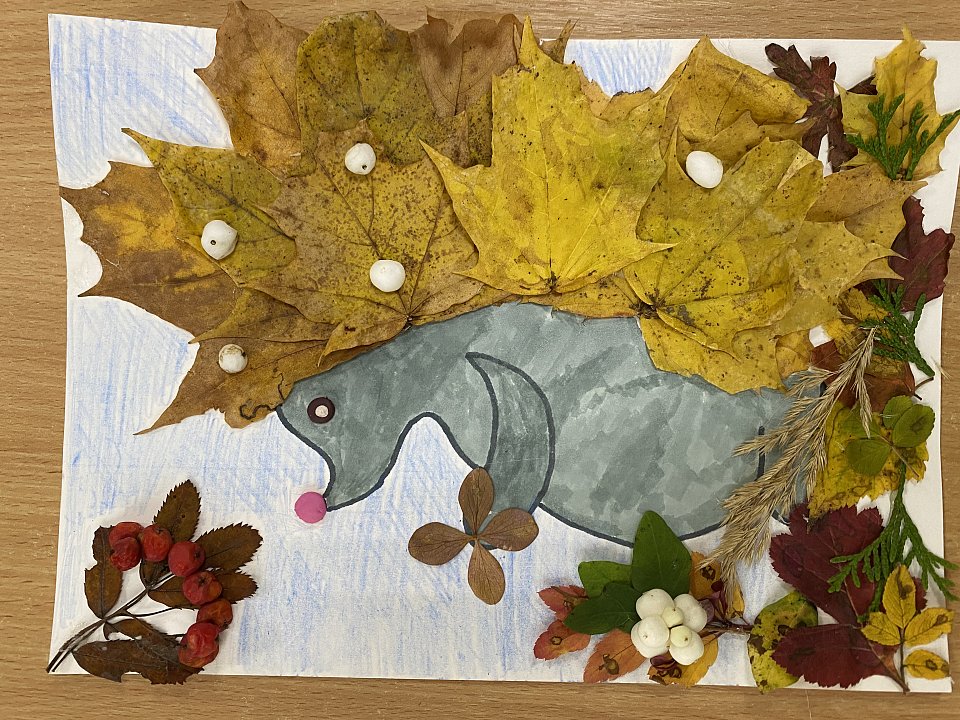 5 лет. Рисование, аппликация. Листья, ягоды, трава, краски, бумага.