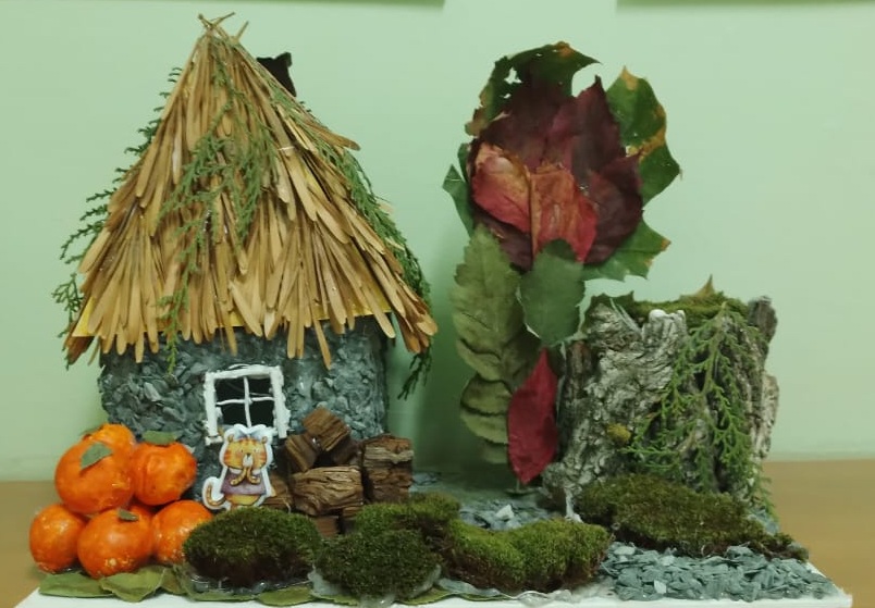 6 лет в изготовлении поделки из природного материала были использованы листья, мох,семена.