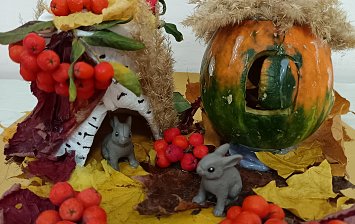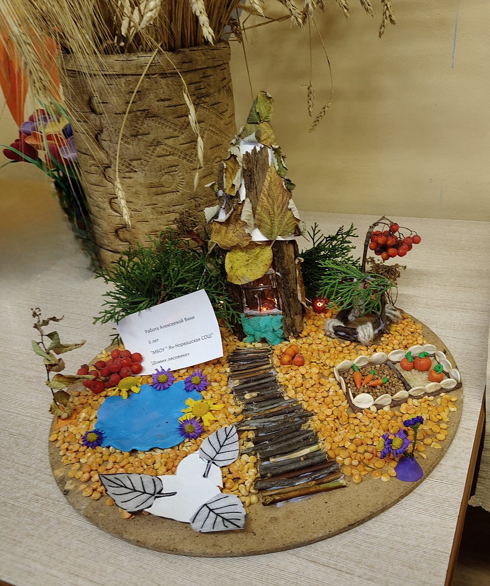 Поделка, сделанная из природного материала. Используемые материалы: крупа, листья деревьев, кора кустарников и ягоды рябины.