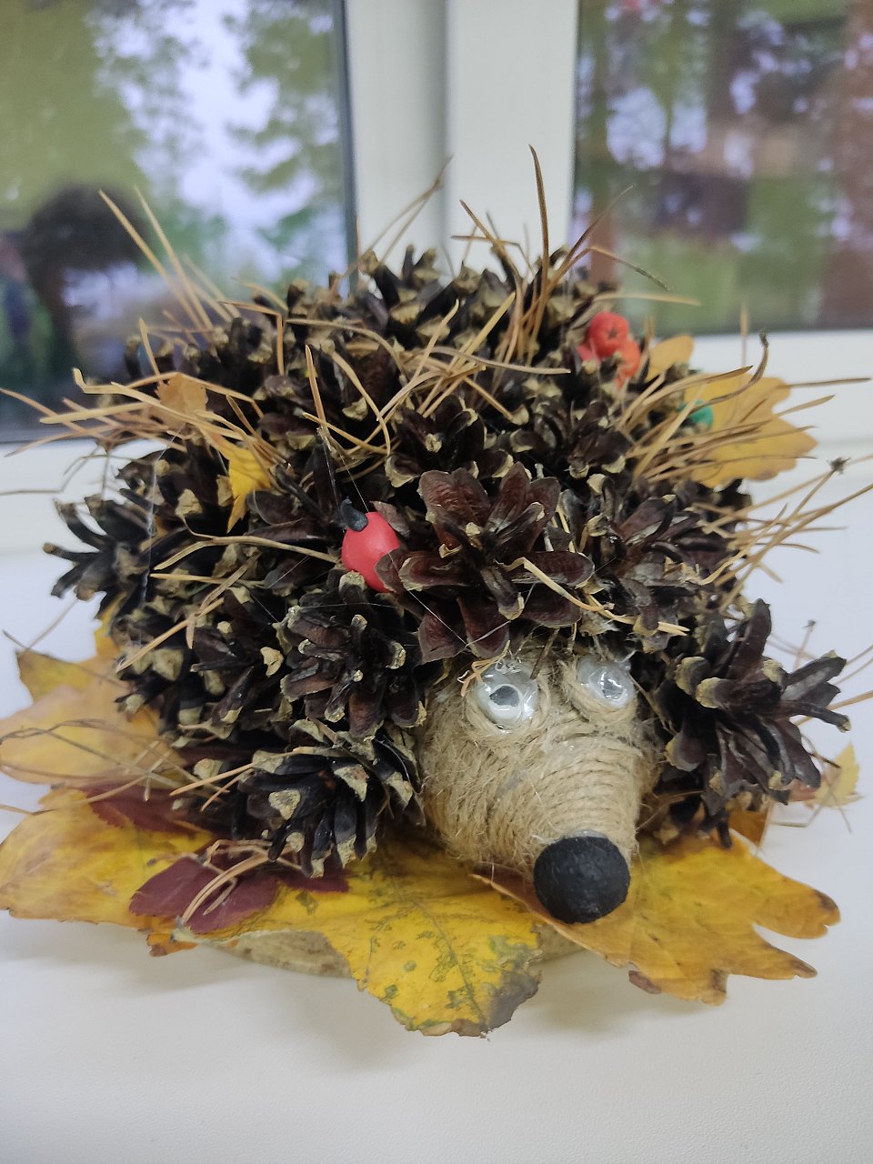 Использовала в своей работе, природный материал: шишки, иголки, листья, веточки, нитки, ягоды.