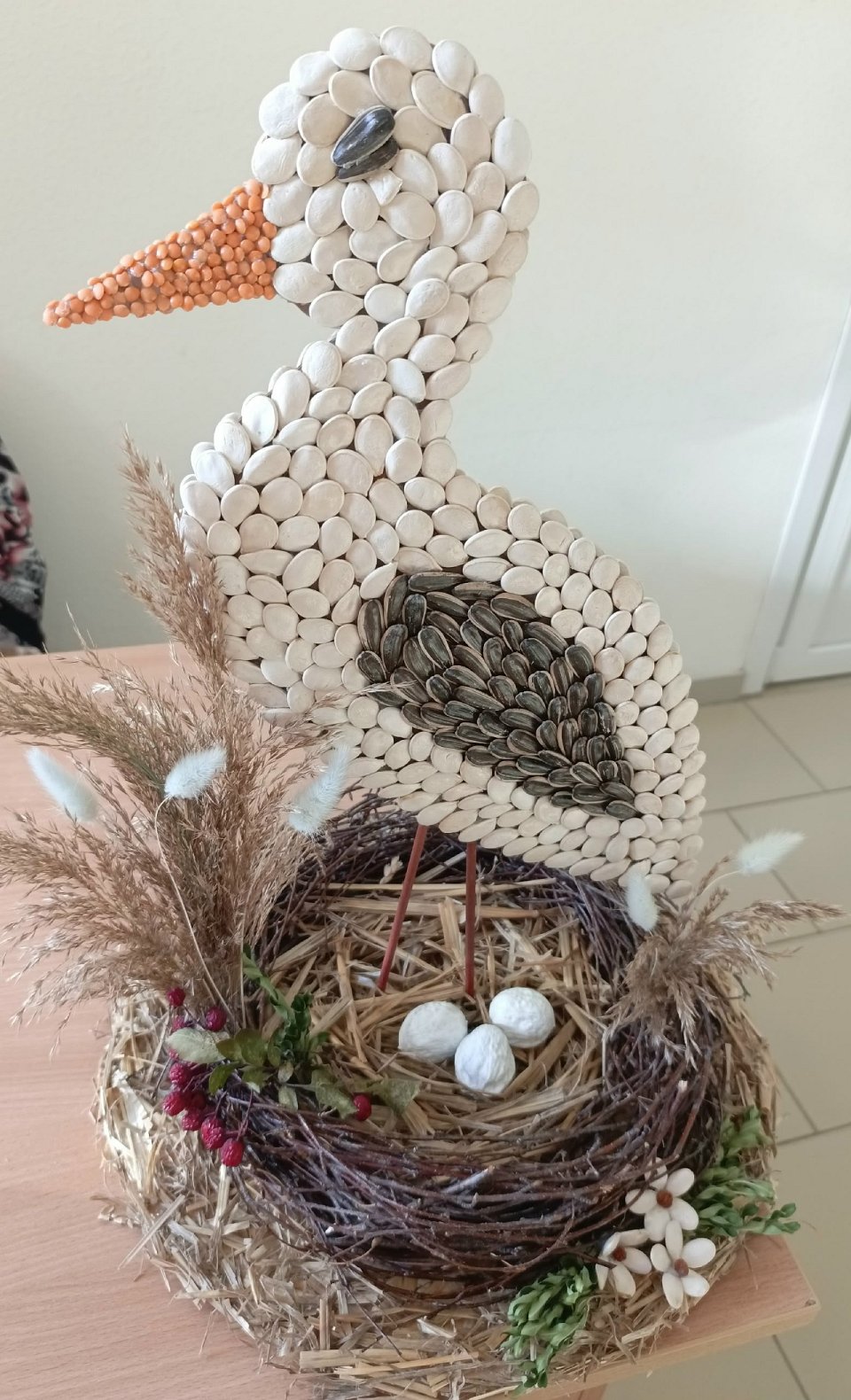 Павел 4 года, поделка из природных материалов,осенних листье,грецкого ореха,соломы