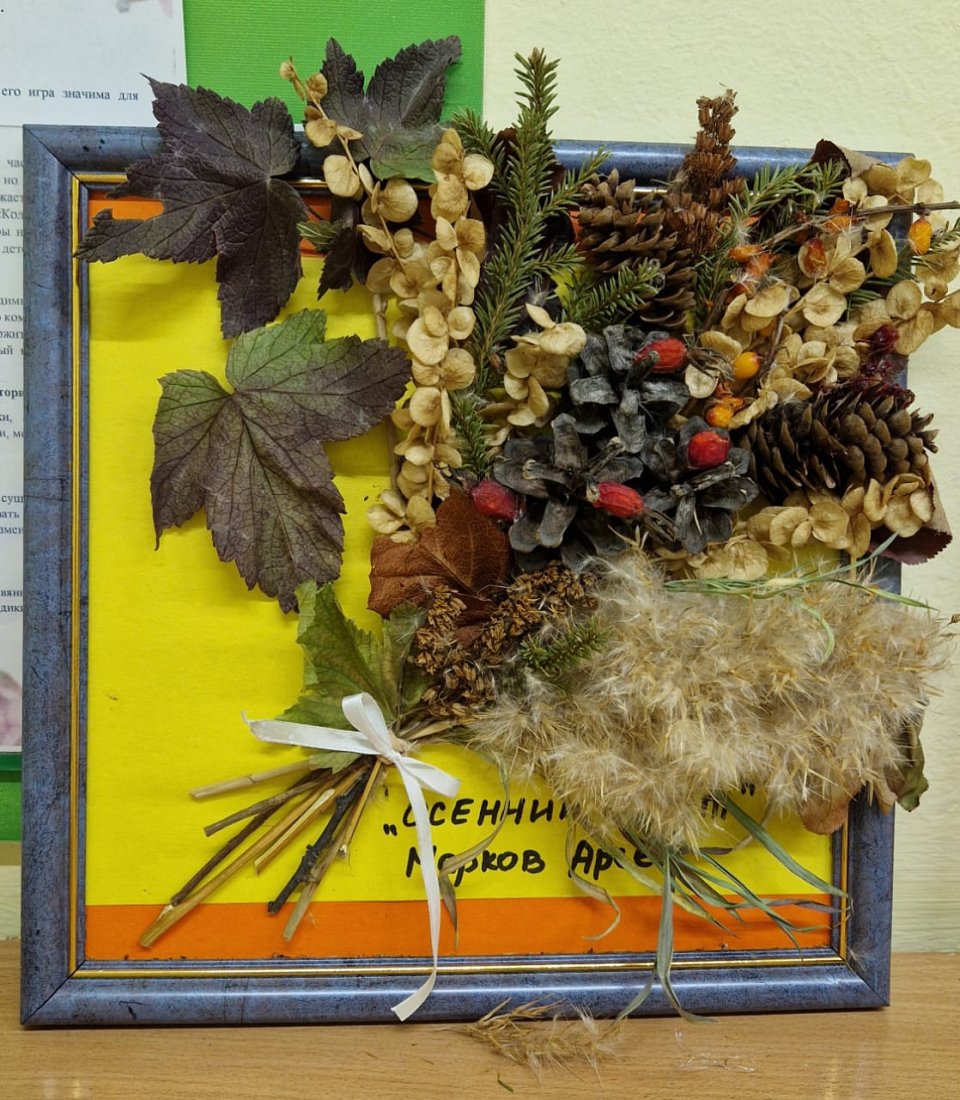 Возраст участника 6 лет, работа выполнена в виде букета из осенних листьев.