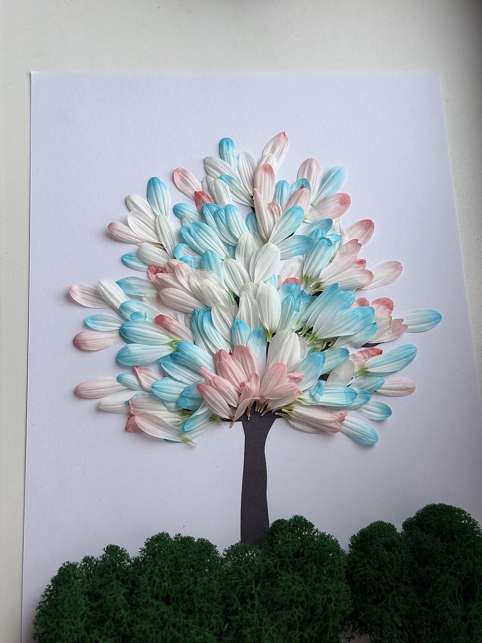 Участник 9 лет,использовал мох и лепестки цветов,бугама а4