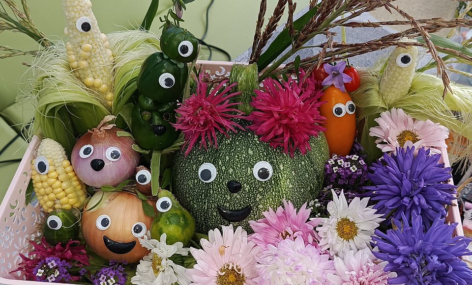 Полина 7лет 1а класс Овощи со своего огорода Корзина Клей Глазки Цветы , выращенные мной в этом году