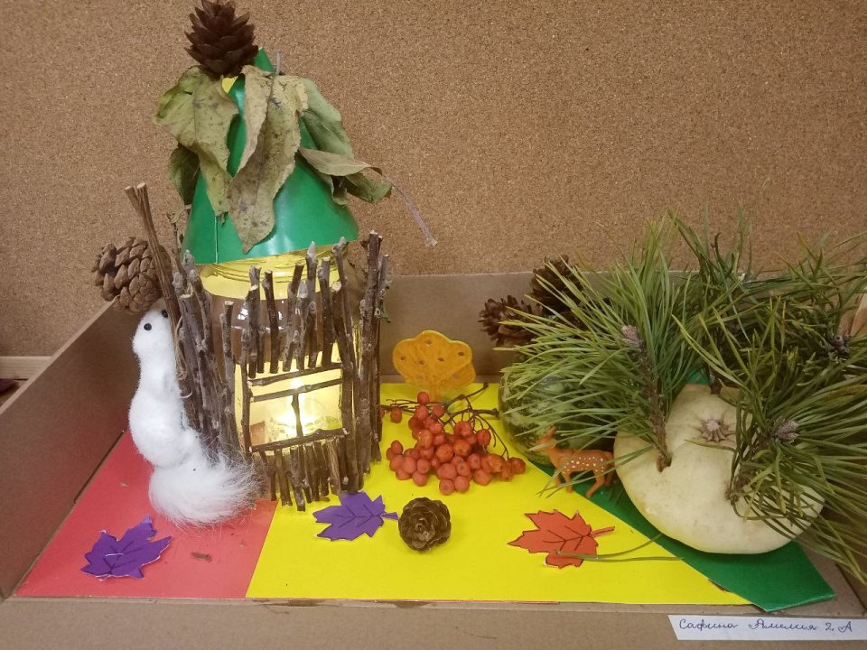 Эта поделка выполнена в смешанной технике, сочетающей природные материалы с декоративными элементами. Возраст участника 8 лет