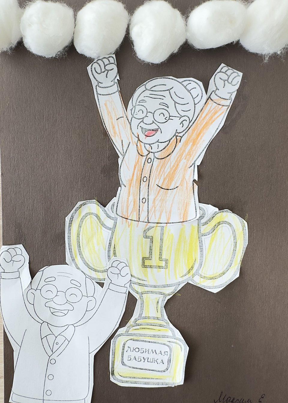 Использовал клей,ножницы,трафарет,бумагу,карандаши,вату.
