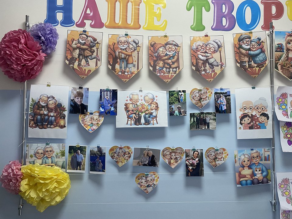 Оформлена работа в виде стенда. Фотографии бабушек и дедушек.