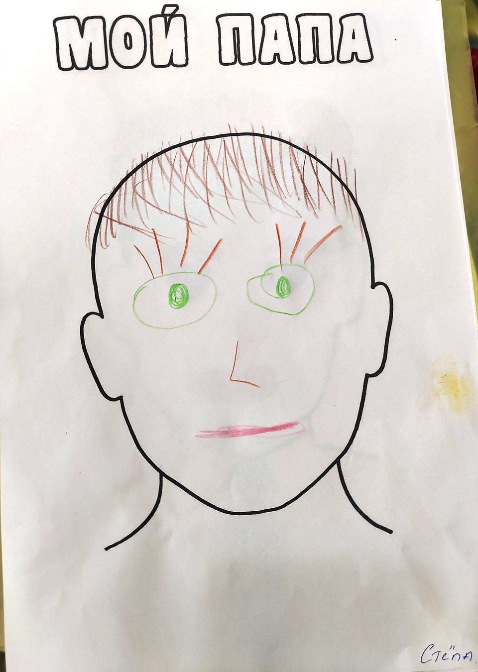 Возраст 3 года. Раскрашивание и дополнение шаблона портрета папы карандашами.