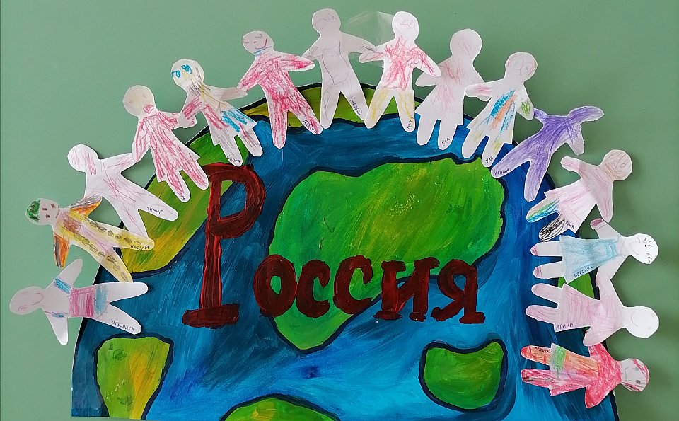 Возраст участников - 4 года. Ребята раскрашивали человечков карандашами и приклеивали на нарисованную планету. Использованные материалы: альбом, карандаши, гуашь.