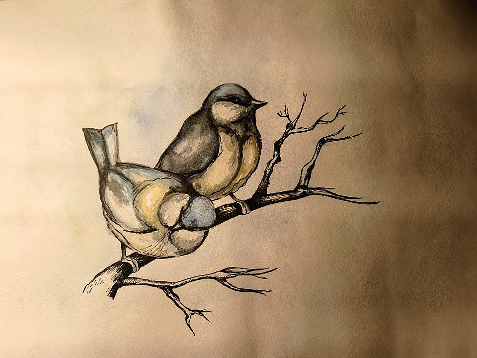 Совместная творческая работа мамы и сына. Выполнено акварельными красками с элементами, проработанными тушью.