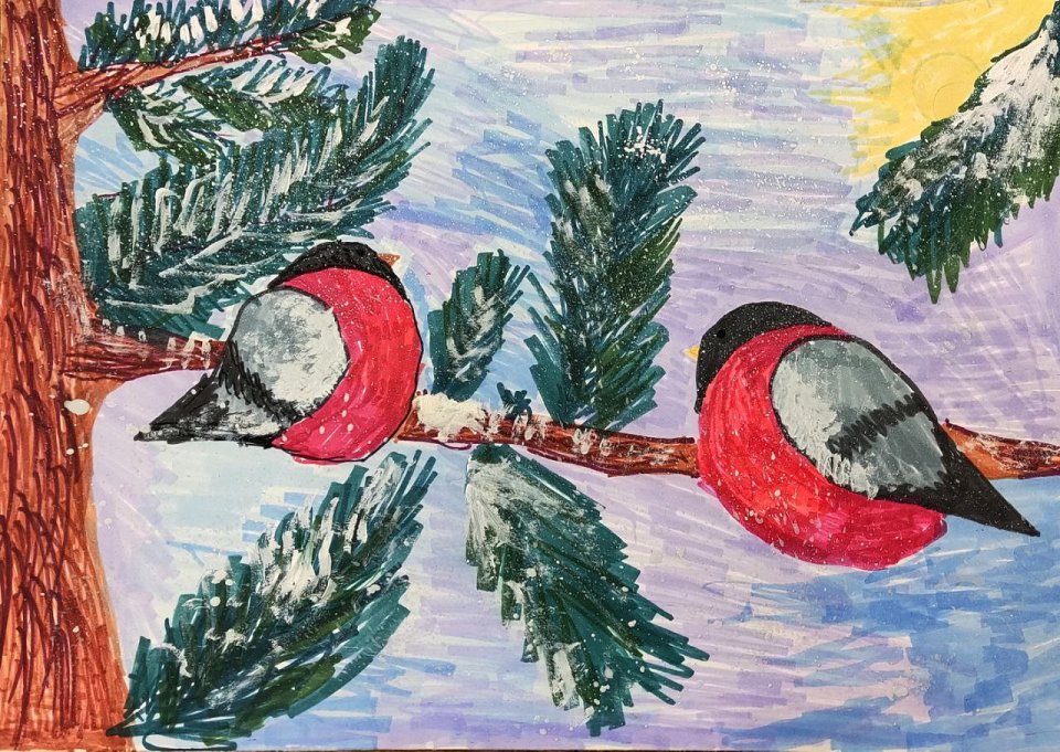 Возраст участника - 11 лет, техника исполнения: смешанная (спиртовые маркеры + белая гуашь)