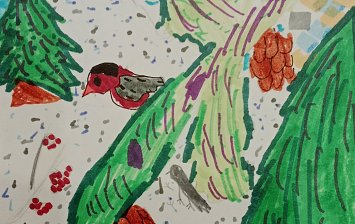 3 года, рисунок нарисован на формате листа А4, красками и фломастерами