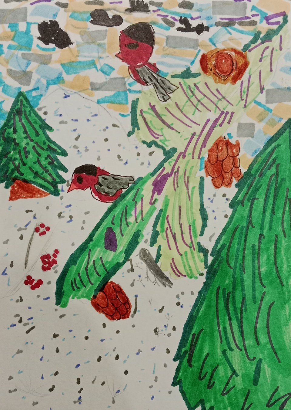 8 лет, рисунок сделан маркерами и чёрной ручкой