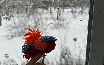 Возраст Виктории 10 лет. Птичку делает из разных цветов ниток. Нитки наматываются на книжку или картонку,а потом разрезает и собирает птичку. Для работы используются нитки разных цветов,бусинки или готовые глазки для глаз,а чтобы приклеить глазки,то используется термоклей.