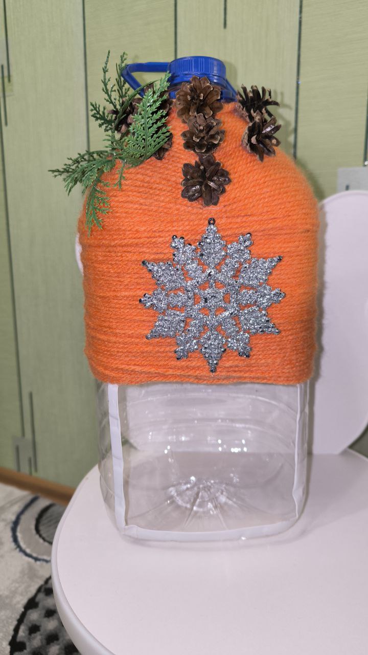 Работа выполнена воспитанником первой младшей группы (3 года) совместно с мамой. Использовался бросовый материал.