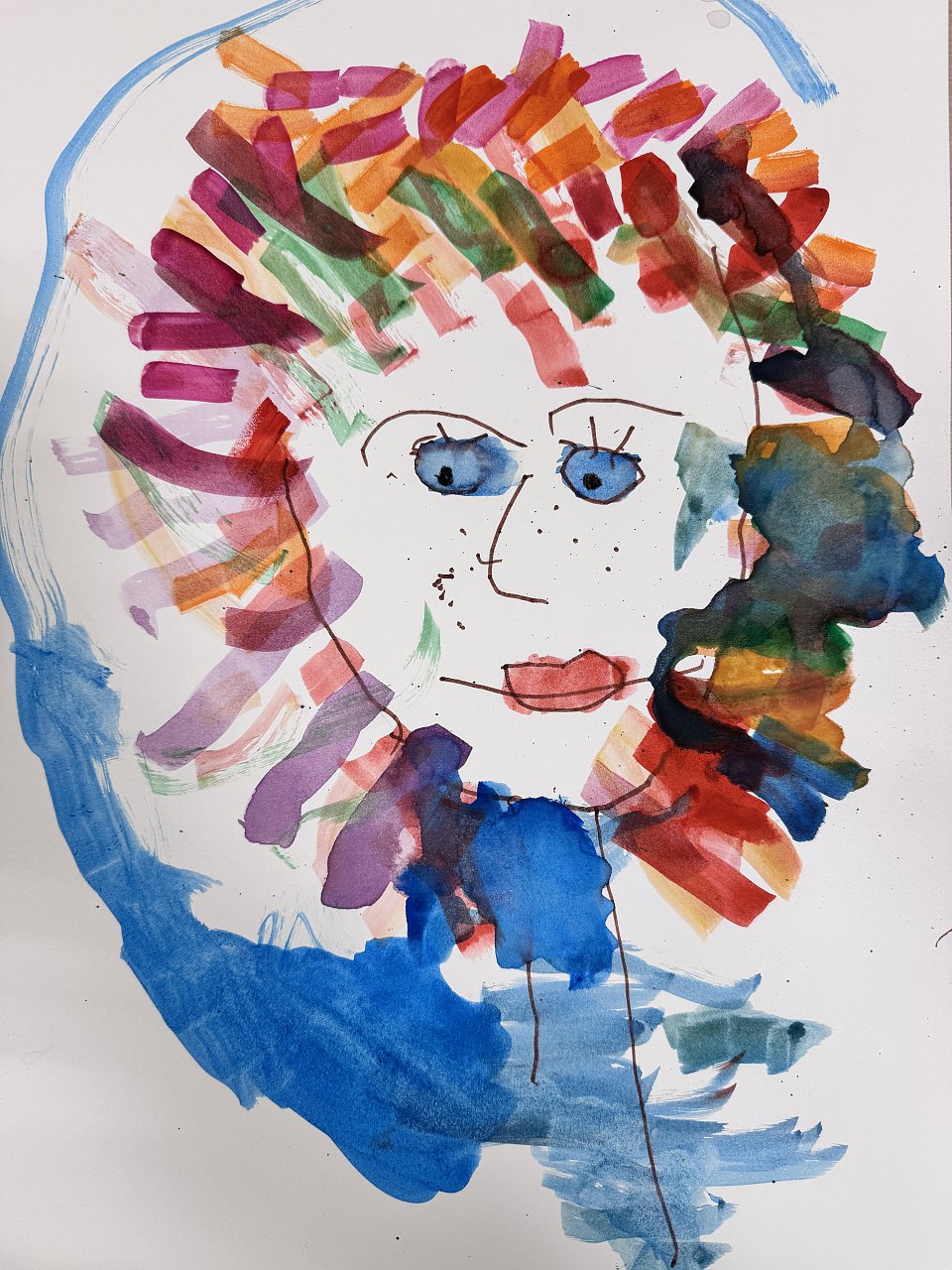 Работа выполнена с использованием акварели и фломастера для придания контуров.