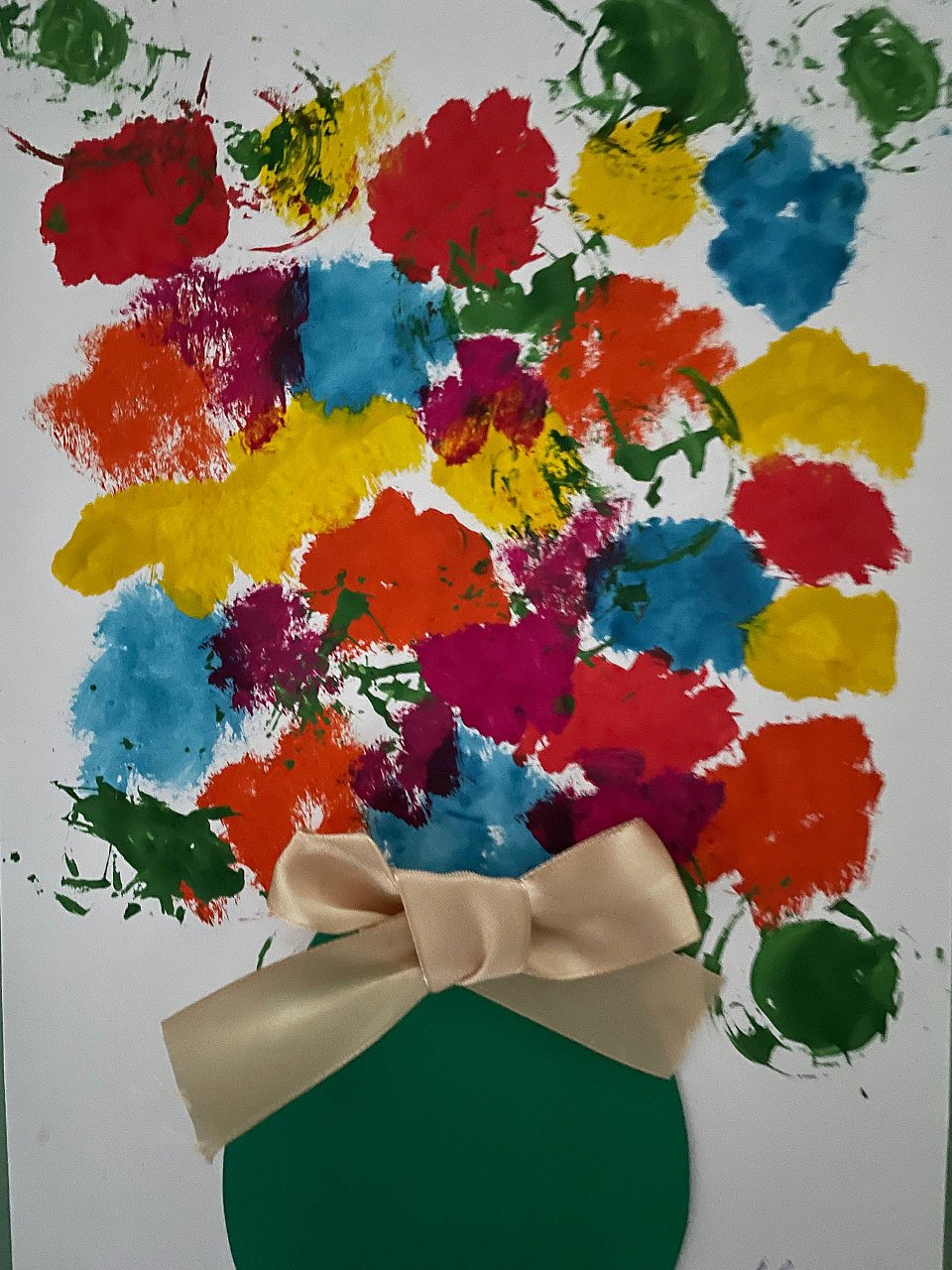 Дети 3-4 года, ватман, краски, атласная лента, кисти, цветной картон.
