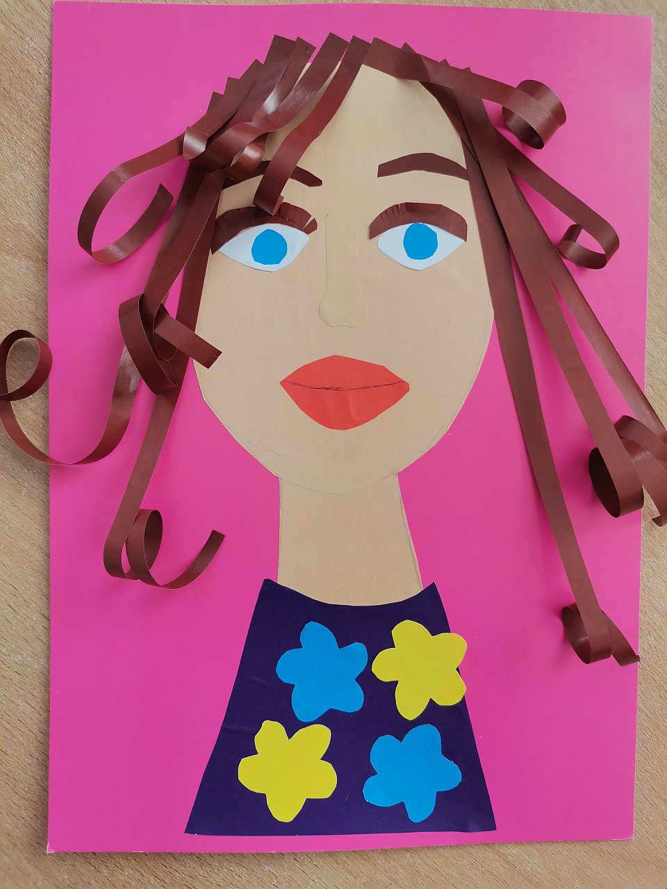 5 лет. Работа выполнена из цветной бумаги и картона.