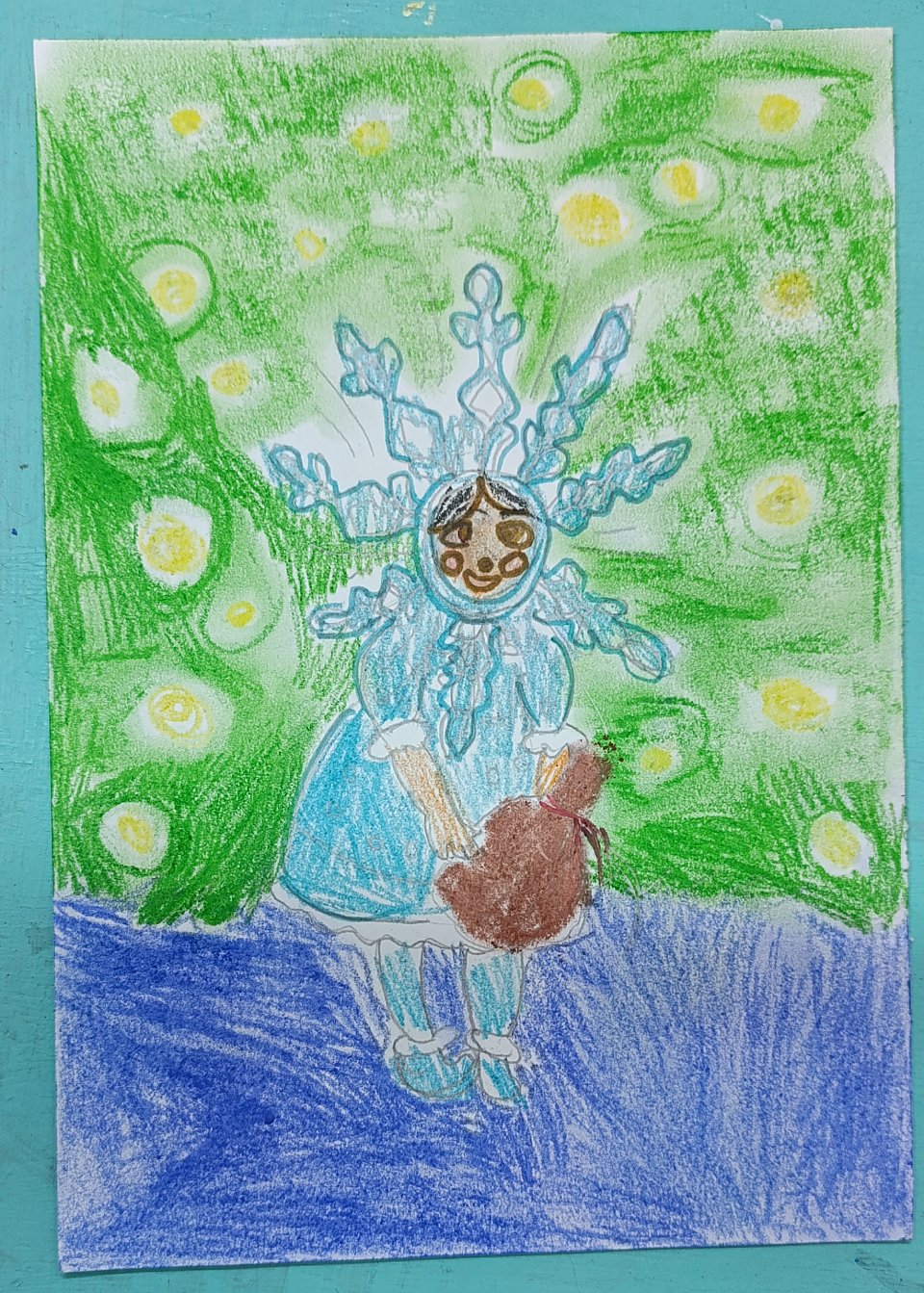 Работа выполнена сухой пастелью , 6 лет