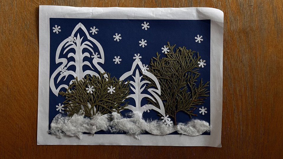 Работа выполнена в технике аппликация