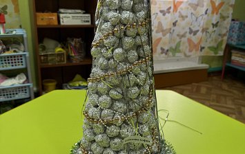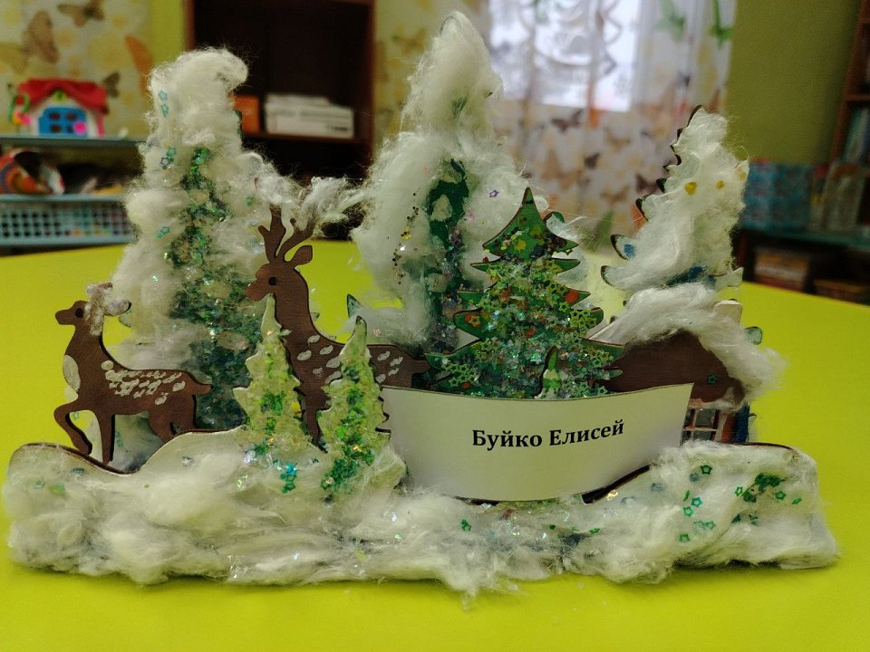 5 лет, использовались материалы, вата, картон, дерево, мишура, краски