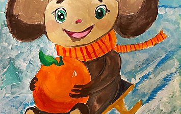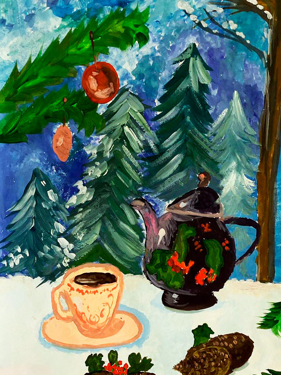 Прекрасный натюрморт в зимней обстановке, гуашь