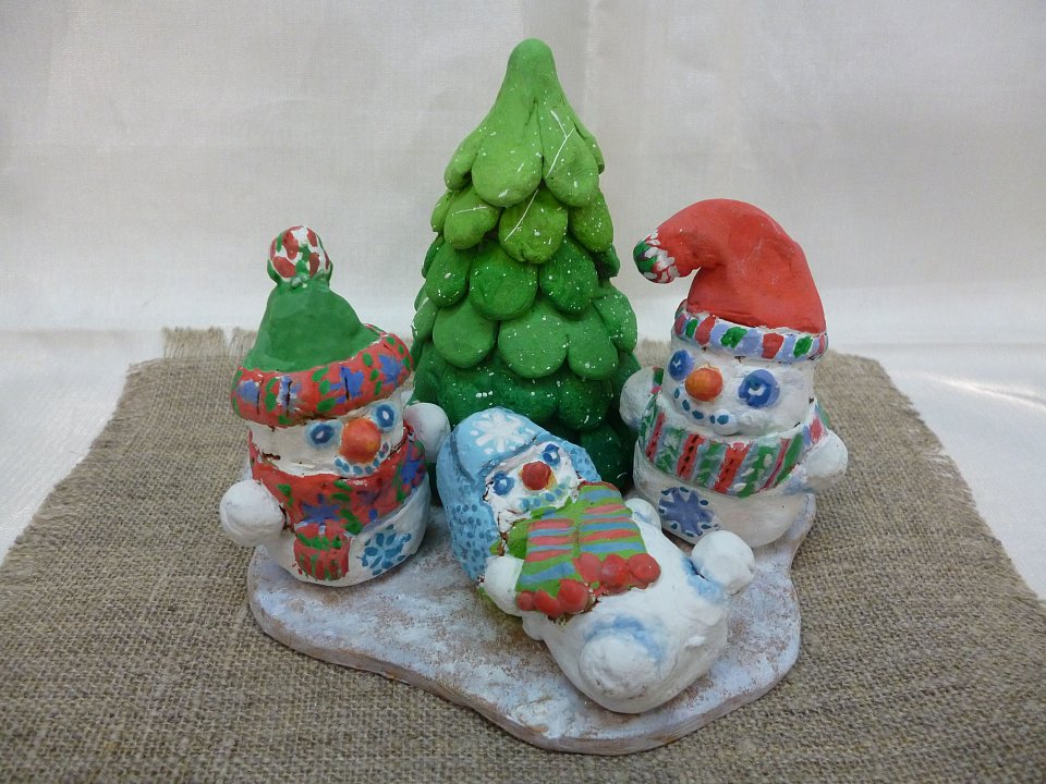 Работа слеплена из глины, обожжена и расписана гуашевыми красками.