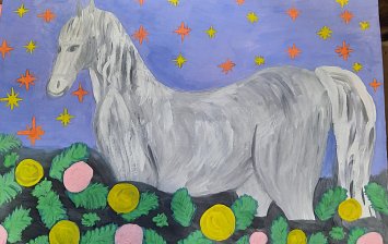 Работы выполнены из бумаги, раскрашены акварелью, вырезаны ножницами и приклеены на красочный фон