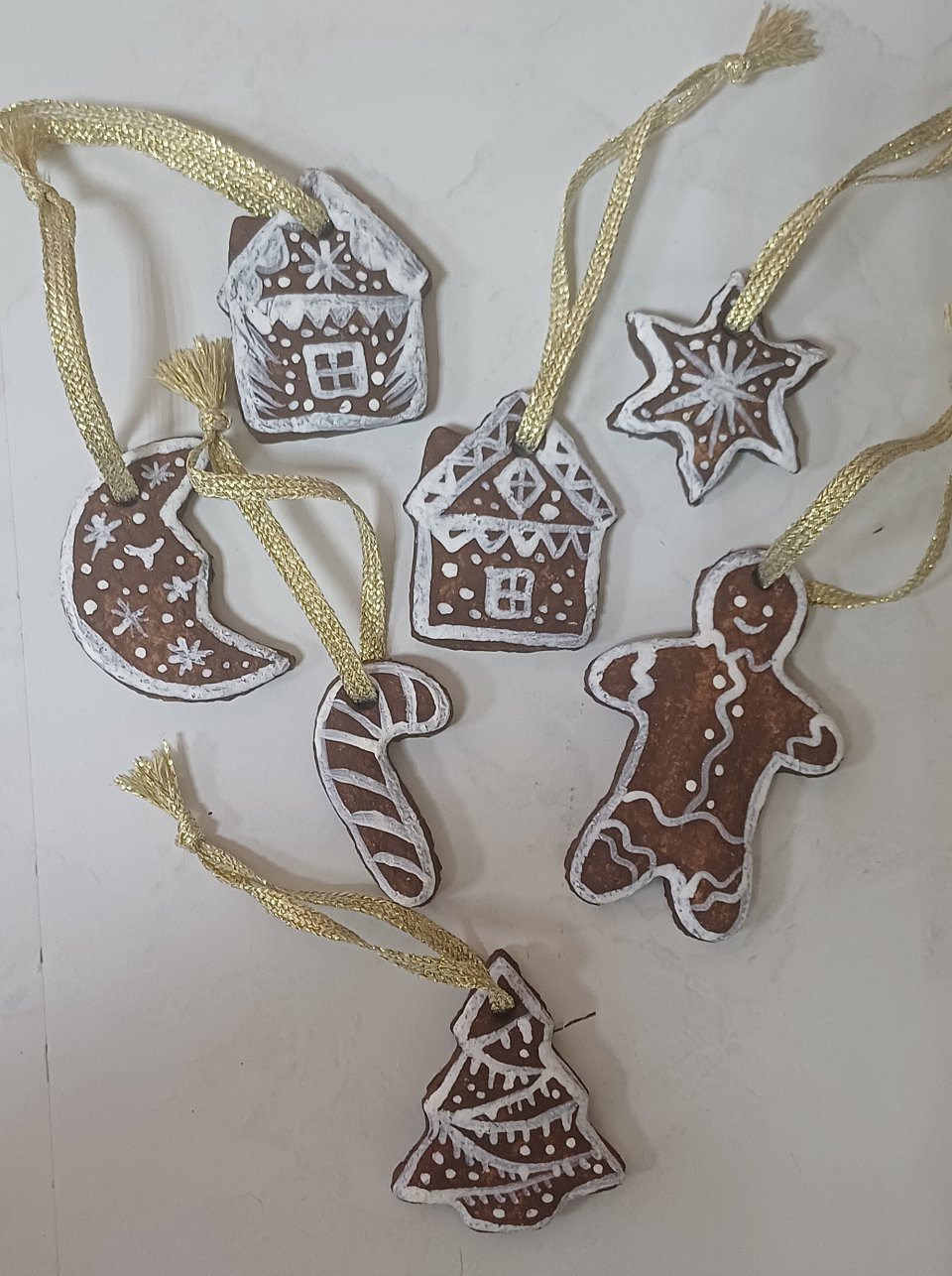 Использованные материалы: солёное тесто, акриловые краски, шнур.