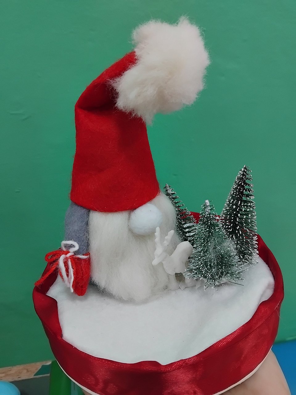 Творческая композиция из фетра с декоративными элементами в виде ёлочки и оленя. Подходит как пособие для рассматривания или просто новогоднее украшение.