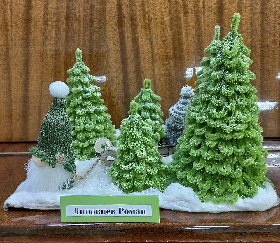 Поделка из ваты, фетра, синильной проволоки, дерева, ткани.