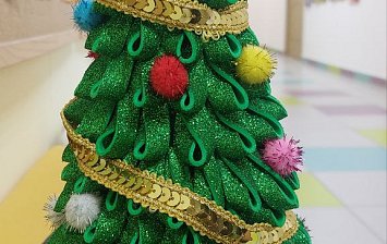 Материалы: конус из пенопласта, нити, бусины.