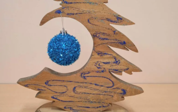 Работа выполнена из макарон, покрашенных зеленой гуашью в технике объемная композиция, украшена цветными шариками из пенопласта. Возраст-2г.