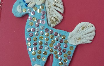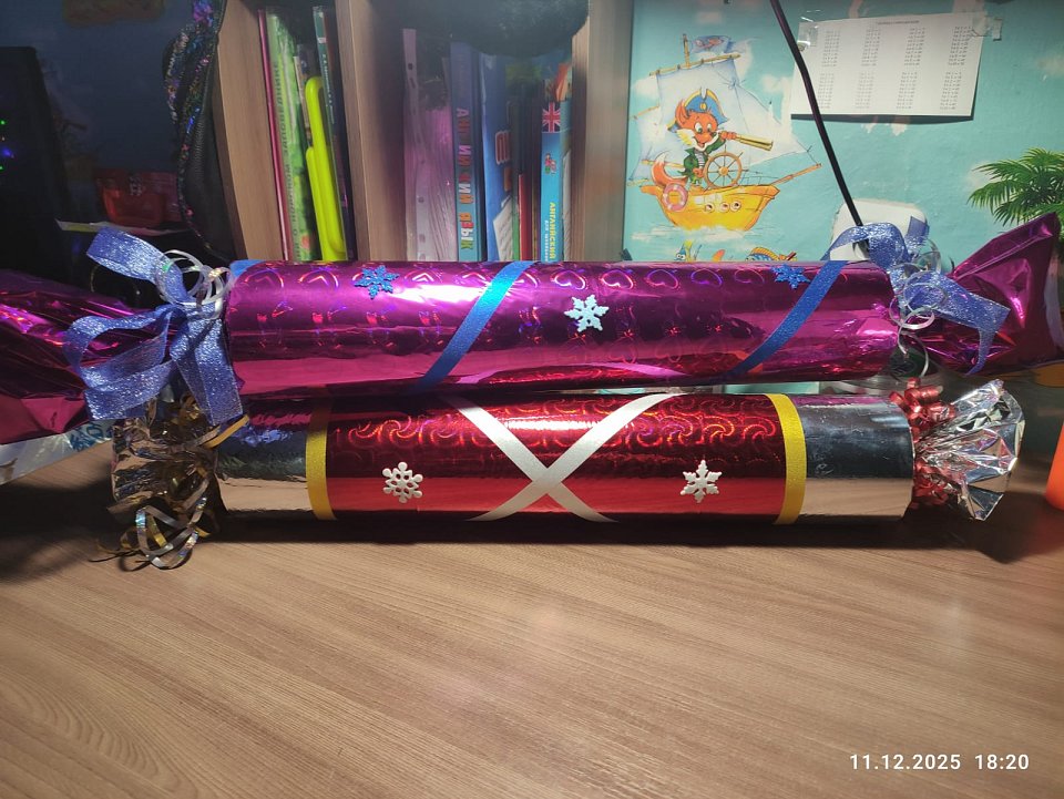 Поделка из пластиковых труб и обёрточной бумаги.