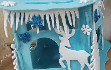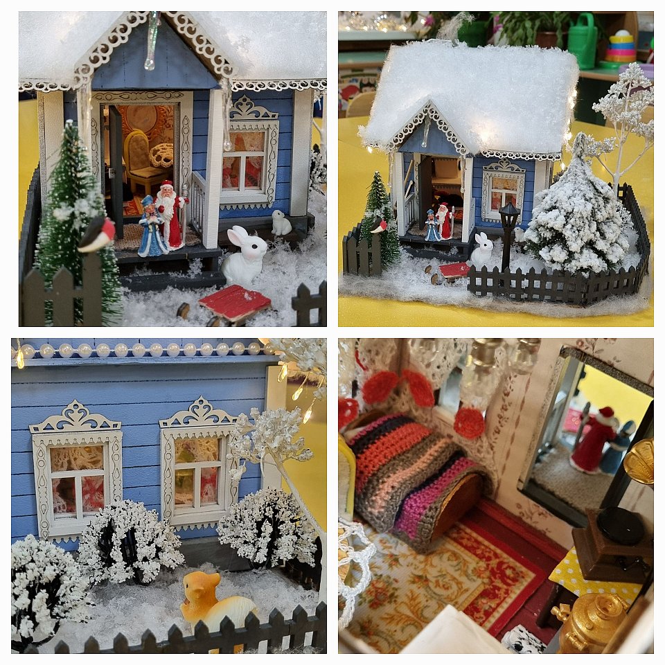 поделка,картон,синтепон,клей титан,акриловые краски,нитки визальные,фигурки миниатюры.