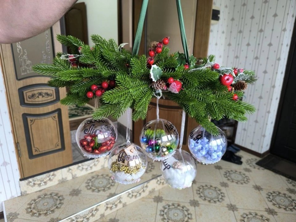 5 лет, елочных ветка, елочные шары, горячий крейсер и различная тематическая атрибутика.