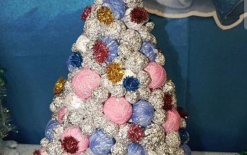 Елка из ватных дисков,игрушки все сделаны своими руками детьми вместе с родителями из разных материалов.