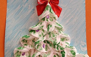 Использованные материалы - ватман, ажурные салфетки, цветная бумага.