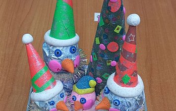 Автор этой работы Константин, 3 года. Поделка выполнена в технике объемного коллажа с использованием различных материалов.